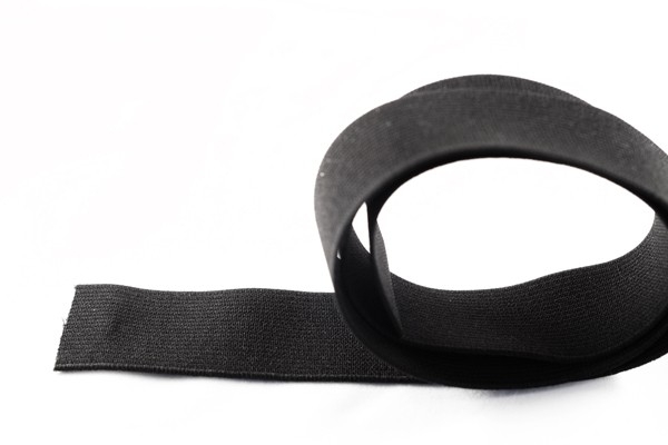 Plat elastiek van 25mm breed in de kleur zwart.
