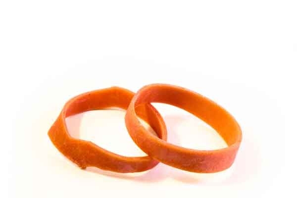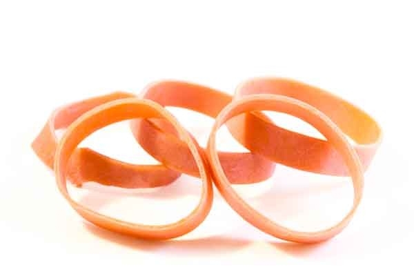 Rubber ringen ten behoeve van het gelijkmatig bij elkaar houden van de nosagveren.